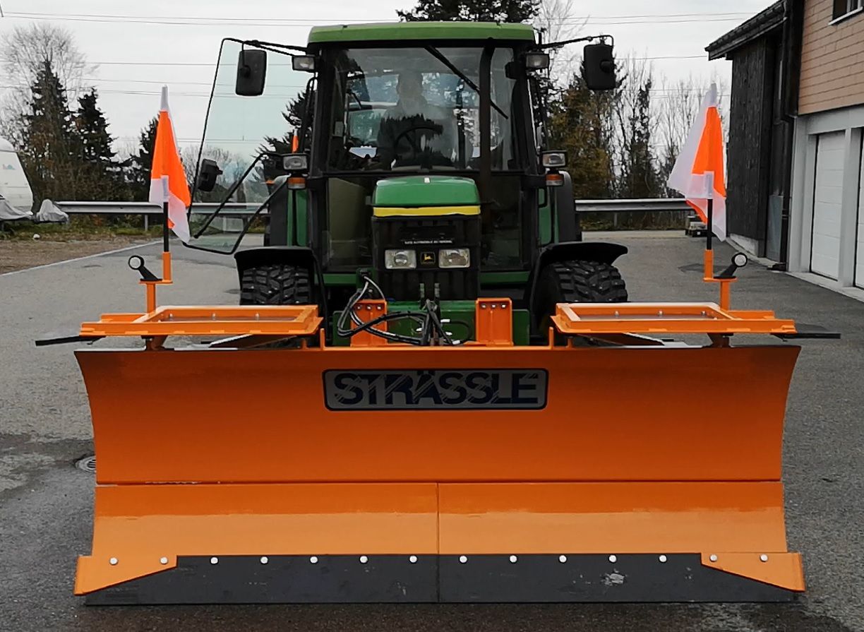 -leichteres Durchfahren von Engstellen durch die Kombination eines vergrösserten Schrägstellwinkels des Schneepflugs (- 45°) und der Parallel-Lateral-Schwenk-Einheit mit einem seitlichen Gesamtversetzbereich von 400 mm.